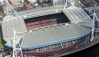千年球場(chǎng)位于卡迪夫,是威爾士的國家球場(chǎng)。在舉辦橄欖球世界杯的球場(chǎng)中,有13個(gè)球場(chǎng)不在英格蘭,千年球場(chǎng)就是其中之一。該球場(chǎng)是威爾士國家橄欖球聯(lián)盟隊(duì)的主場(chǎng),另外還承辦威爾士國家足球隊(duì)的比賽。該球場(chǎng)的最初建設(shè)是為主辦1999年的橄欖球世界杯,之后繼續(xù)主辦許多其他大型賽事,例如,海嘯救濟(jì)音樂會(huì)、英國威爾士拉力賽超特大舞臺(tái)、英國速道大獎(jiǎng)賽,以及各種音樂會(huì)。