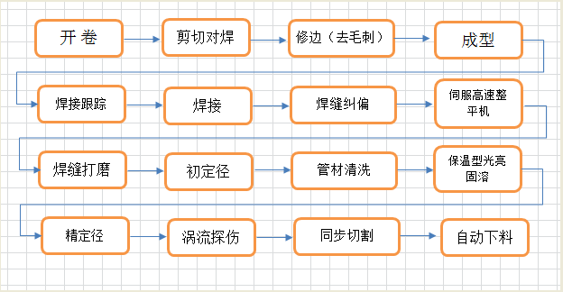 長久的合作,長久的誠信,服務周全已經(jīng)是漢高的中心品牌,在中國最出名不銹鋼管材:久力,武進,鎮(zhèn)海石化,三花集團也跟我們漢高機械合作,那是因為我們的價格的便宜?是因為我們的技術,質量,服務,客戶的要求全都做到客戶心中所要的目的。有很多客戶都不太懂焊管機設備的工藝是怎樣的。下面由我來簡單介紹下:
