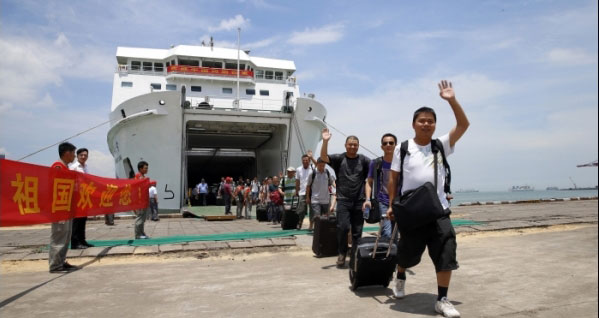 自5月14日越南發(fā)生針對外國企業(yè)和人員的打砸搶燒嚴(yán)重暴力事件以來,在越中國工人的安危就一直牽動著全國人民的心。事件發(fā)生后,中國中冶集團(tuán)及參與救援的各相關(guān)部門和單位按照黨中央、國務(wù)院的指示精神和國資委的要求部署,團(tuán)結(jié)一致,迅速撤回在越中方人員并妥善安排救治傷員等事宜。圖為5月20日11時50分,中冶集團(tuán)的部分員工回到祖國的懷抱。(作者:吳治宏 單位:中冶十九冶)