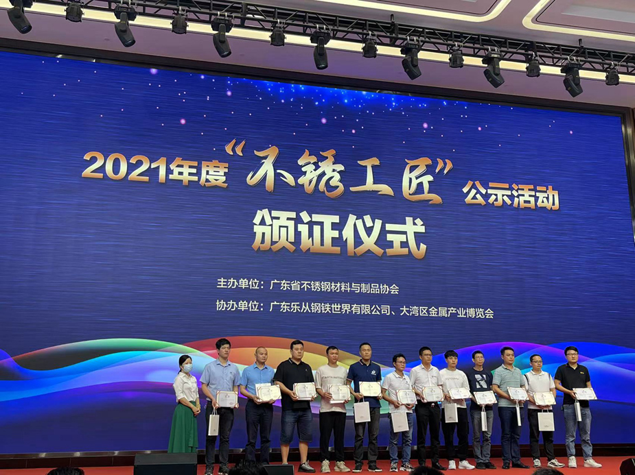 6月15日下午,由廣東省不銹鋼材料與制品協(xié)會(huì)舉辦的2021年度“不銹工匠”公示活動(dòng)頒證儀式在理事單位樂從鋼鐵世界總部大樓多功能會(huì)議廳舉行。本次公益活動(dòng)旨在進(jìn)一步貫徹落實(shí)省委省政府“廣東技工”工程,大力弘揚(yáng)工匠精神,培育選樹一批先進(jìn)榜樣,進(jìn)一步營造尊重人才、崇尚技能、追求品質(zhì)的行業(yè)氛圍,持續(xù)擦亮“不銹優(yōu)品·廣東質(zhì)造”的名片。
