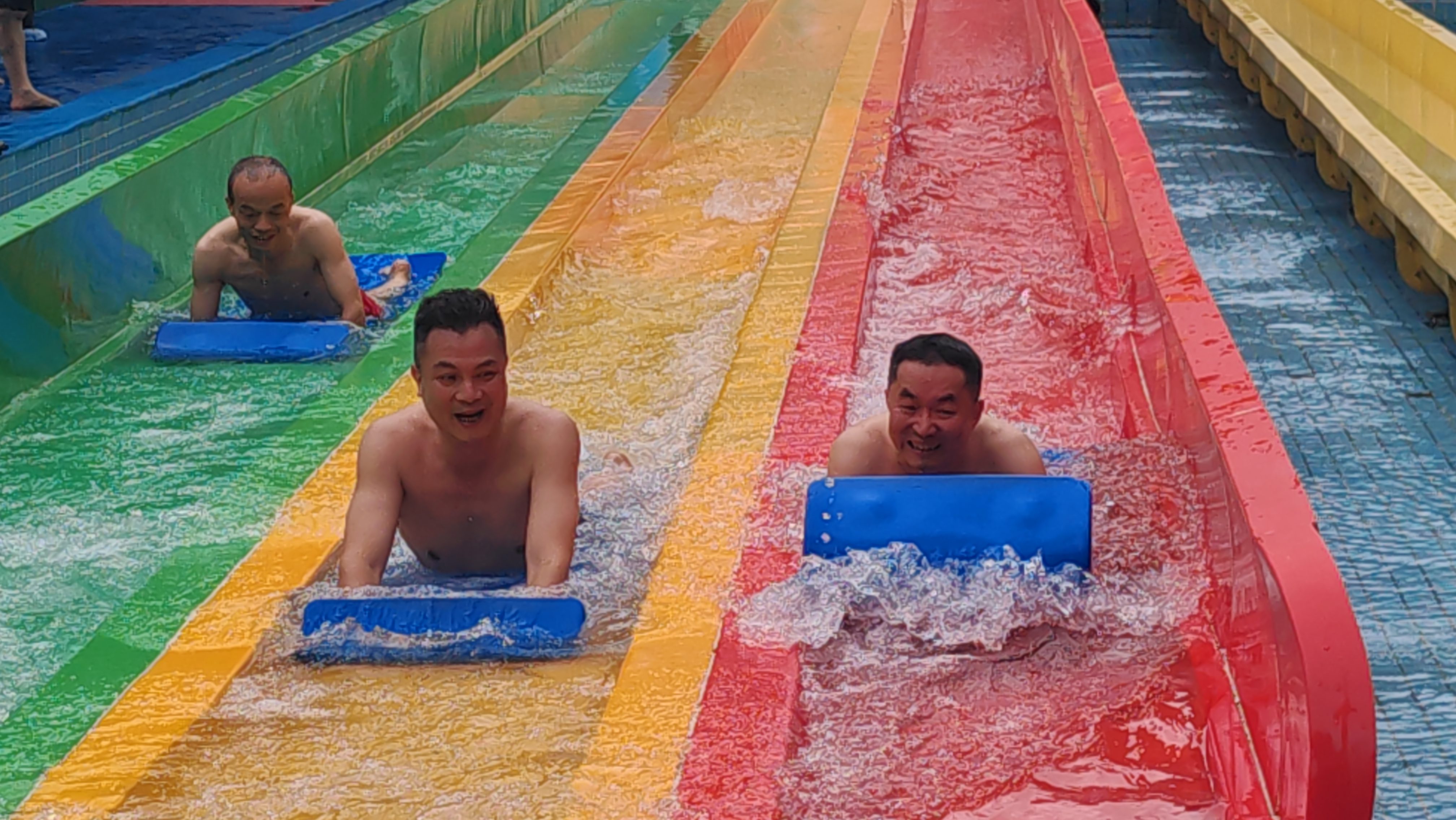 第二天的行程充滿了夏日的激情與歡樂。在水上樂園里,各種刺激的水上項(xiàng)目讓大家盡情釋放活力。從高空滑道俯沖而下的尖叫,到造浪池里隨波逐流的歡笑,每個(gè)人都沉浸在純粹的快樂之中。