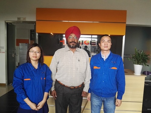 2015年11月16日,我們漢高機(jī)械副總經(jīng)理肖遠(yuǎn)平先生親自接待了 Mr Singh先生,同行的還有我們的外貿(mào)業(yè)務(wù)員謝鑫梅小姐和 Mr Singh先生的中國(guó)朋友。按照行程計(jì)劃表,我們首先帶 Mr Singh先生參觀了我們的工廠,展示了我們的內(nèi)整平裝配區(qū)域,制管機(jī)裝配區(qū)域,光亮退火裝配區(qū)域,倉(cāng)庫(kù)區(qū)域,發(fā)貨區(qū)域,休息區(qū)域等,Mr Singh先生高度贊許了我們的5S管理體制,表示將學(xué)習(xí)應(yīng)用我們的成功經(jīng)驗(yàn)在他們的車間管理體制上。在這個(gè)過程中,我們一一向客戶詳細(xì)展示了設(shè)備,包括設(shè)備的構(gòu)造,配件,電氣設(shè)備,工作原理,操作事項(xiàng)等。隨后我們帶Mr Singh先生到了會(huì)議室,在準(zhǔn)備產(chǎn)品PPT展示的同時(shí)帶領(lǐng)客戶參觀了我們的產(chǎn)品櫥窗,親手感受我們的產(chǎn)品效果。一切準(zhǔn)備就緒后,我們開始向客戶做產(chǎn)品presentation,了解客戶的各方面要求并記錄下來(lái)方便為客戶做技術(shù)方案和報(bào)價(jià)。會(huì)談在愉快的氣氛中結(jié)束了,我們開始下一個(gè)主題。我們帶客戶去了我們?cè)诜鹕奖镜氐目蛻艄S,了解設(shè)備的投入使用情況,運(yùn)行情況和成品情況。由于提前做好了溝通工作,我們佛山的老客戶已經(jīng)為我們安排好了參觀行程和隨行工程師講解,讓印度客戶更深入的了解我們的設(shè)備。印度客戶對(duì)我們的高效率,良好的溝通,清晰的展示,周到的服務(wù),產(chǎn)品的質(zhì)量等各方面都非常滿意,表示希望我們給他一個(gè)最好的價(jià)格,他很希望能與我們這樣誠(chéng)信敬業(yè),有資質(zhì)有實(shí)力的公司長(zhǎng)期合作,只要價(jià)格合適他就會(huì)陸續(xù)下單。肖經(jīng)理表示:No problem.We appreciate you.