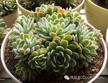 8. 爆盆:字面意思即多肉生長(zhǎng)季節(jié)不斷長(zhǎng)出側(cè)芽或瘋狂長(zhǎng)大滿(mǎn)滿(mǎn)一盆、甚至略顯擁擠的最佳狀態(tài),多為易群生品種或護(hù)盆類(lèi)小型多肉品種。