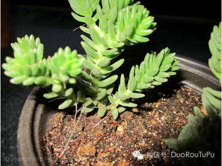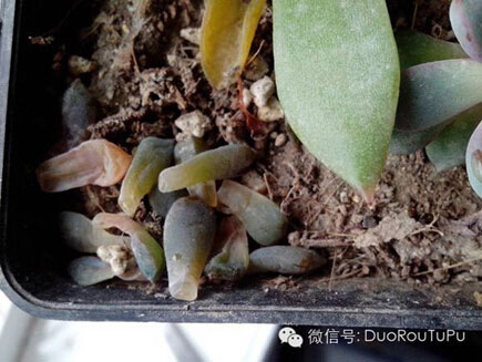5. 斷水/控水:斷水就是停止?jié)菜?,而控水就是適當(dāng)控制澆水的量與次數(shù)。斷水與控水多在冬夏兩季,因?yàn)槎膬杉敬蠖鄶?shù)品種的多肉會(huì)進(jìn)入休眠期,對(duì)水分需求減少,如過(guò)多水分反而會(huì)導(dǎo)致多肉化水、黑腐等不良后果。
