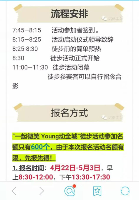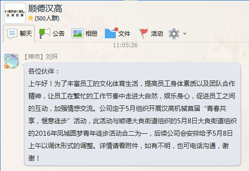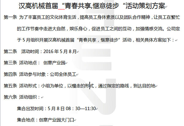為了豐富員工的文化體育生活,提高員工身體素質(zhì)以及團(tuán)隊合作精神,讓員工在繁忙的工作節(jié)奏中走進(jìn)大自然,娛樂身心,促進(jìn)員工之間的互動,加強(qiáng)情感交流。公司定于5月組織開展?jié)h高機(jī)械首屆“青春共享,愜意徒步”活動,此活動與順德大良街道組織的5月8日大良街道組織的2016年鳳城圓夢青年徒步活動合二為一,讓我們一起來享受徒步走樂趣。